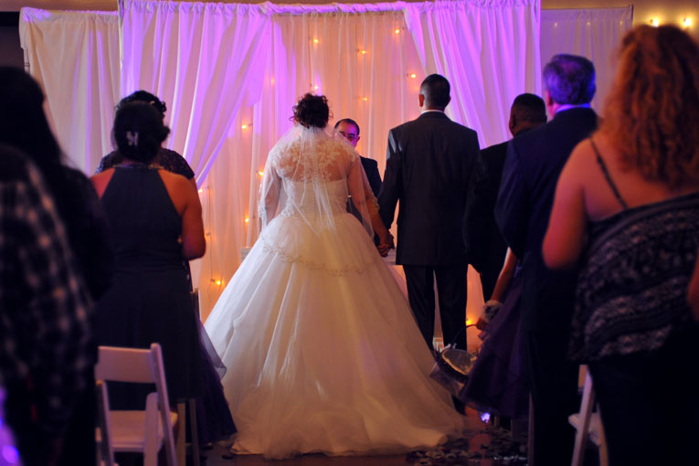 • bride entering the wedding ceremony area