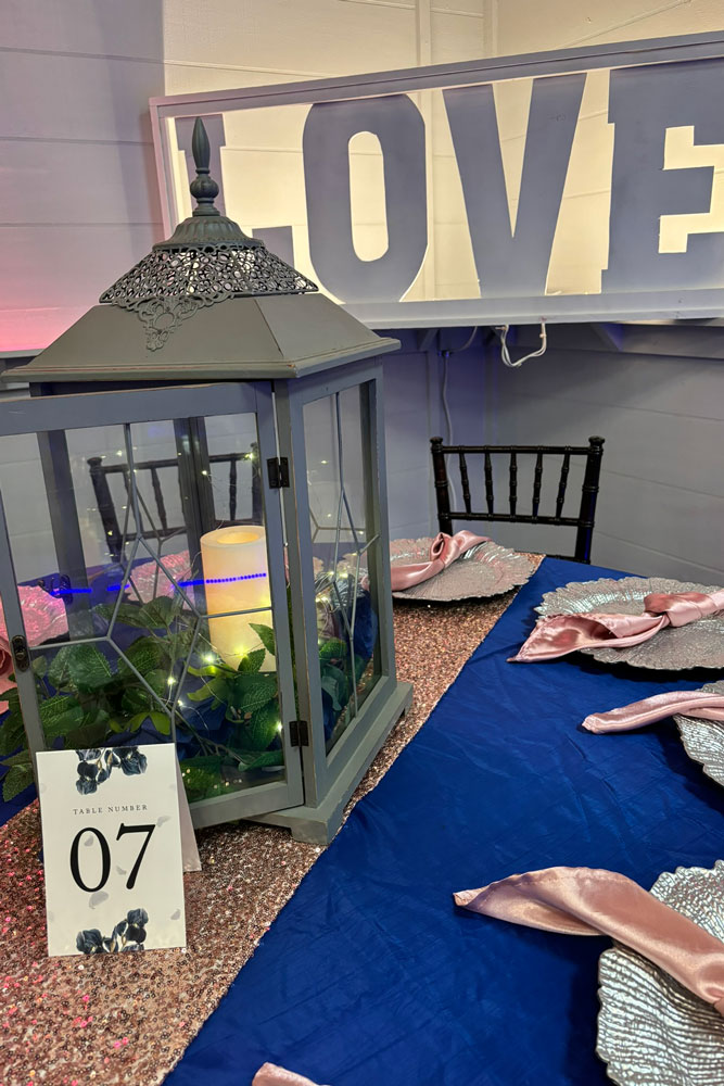• Beautifully prepared event venue with décor in place, ready for a celebration